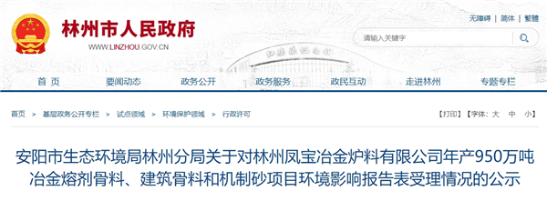 近日,河南省安陽市林州鳳寶冶金爐料有限公司年產950萬噸冶金熔劑骨料、建筑骨料和機制砂項目環評受理。該項目總投資超9.4億元(94111.4萬元),礦山設計生產服務年限22.8年,施工工期12個月。生產規模950萬噸/年,其中建筑用石料礦750萬噸/年,熔劑用白云巖礦200萬噸/年。