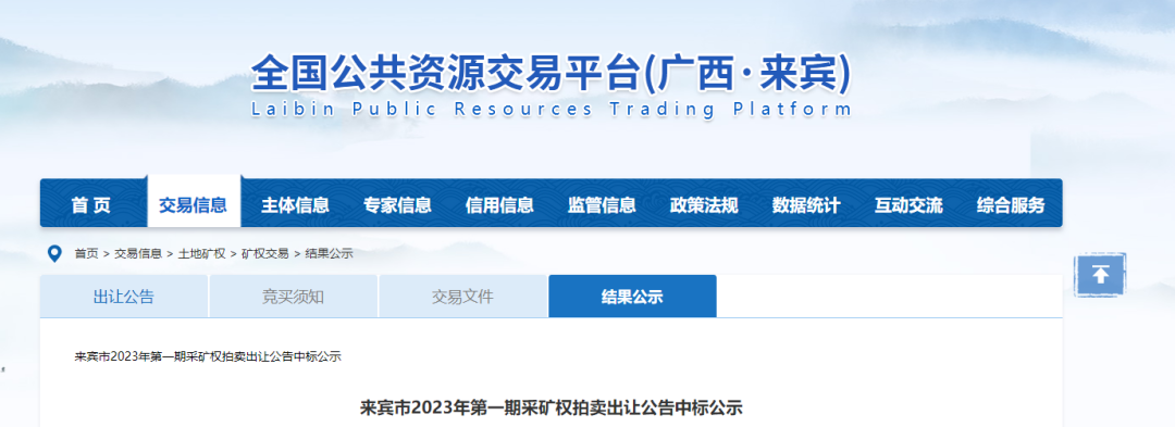 來賓市2023年第一期采礦權拍賣出讓公告中標公示 經來賓市人民政府批準,受來賓市自然資源局委托,來賓市公共資源交易中心于2023年12月12日至2024年1月12日組織了來賓市以下1礦區的采礦權公開拍賣出讓交易活動,現將交易結果進行公示。 一、成交情況: 廣西來賓市武宣縣武宣鎮土番礦區白云巖礦[編號為P(2023)1號];礦區位于武宣縣城區北西面310°方向,直距約5km的武宣縣武宣鎮土番村一帶,屬武宣鎮所轄。 1.主礦種:白云巖(出讓可采資源儲量:3752.83萬噸); 2.副礦種:建筑石料用灰巖(出讓可采資源儲量582.29萬噸); 3.生產規模:300.00萬噸/年(礦石量); 4.礦區面積:0.2830平方公里; 5.開采標高:自+216.2m至+80m止; 6.開采方式:露天開采; 7.拍賣采礦權發證年限:16.00年(其中建設年限1.40 年、礦山服務年限14.60年),自頒發采礦許可證之日起算,該采礦權出讓計劃于2022年12月6日獲自治區自然資源廳批復,為新立礦權; 8、競得人名稱:安徽瀚帆企業管理有限公司 9、成交時間:2024年1月12日 10、成交方式:線上拍賣出讓方式成交 11、成交價:人民幣玖仟捌佰捌拾萬元整(¥98800000.00元) 二、產業投資要求 (一)本次出讓的廣西來賓市武宣縣武宣鎮土番礦區白云巖礦采礦權為來賓市統籌推進重大項目配套的白云巖礦開采項目,采礦權競得人須在簽訂《采礦權出讓合同》的同時,與武宣縣人民政府簽訂產業投資協議,競得人須按投資協議約定履行義務。后續開發必須堅持優質優用和就地深加工原則,限制優質白云石、石灰巖等碳酸鈣資源作為砂石骨料原料開發。若后續不能按協議約定履行義務,出讓機關有權取消礦權競得人資格,依法收回礦權。 (二)助推鄉村振興有關要求。為有效推進“凈礦”出讓與鄉村振興有效銜接,助推武宣縣鞏固脫貧攻堅成果和鄉村振興,由競得人按照采出商品礦每噸0.8元、石粉每噸0.2元提取作為專項資金投入資源所在鄉鎮,由武宣縣人民政府統籌,具體實施方案由競得企業在礦山正常生產后商武宣縣人民政府,制定專項投入助推鄉村振興、改善人居環境建設的實施方案,并經武宣縣人民政府同意后實施。