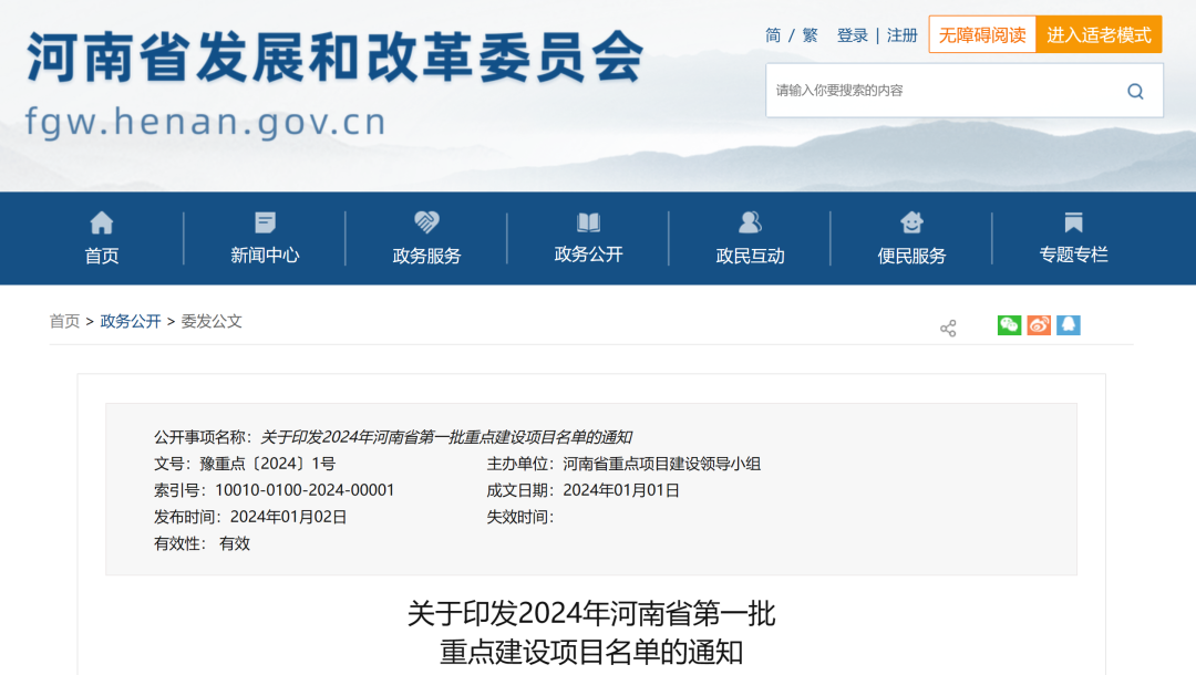 關(guān)于印發(fā)2024年河南省第一批重點建設(shè)項目名單的通知
