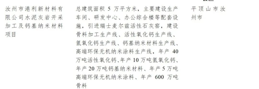 汝州市港利新材料水泥灰?guī)r開采加工及鈣基納米材料項目