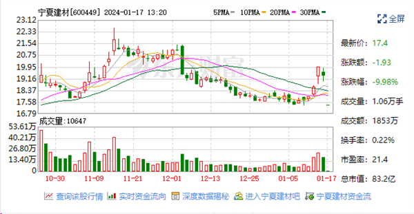 1月17日,寧夏建材盤中-9.98%跌停,封單金額近3億元,總市值83.2億元。