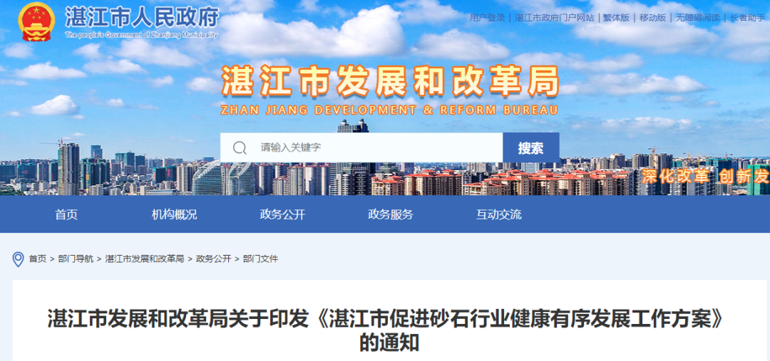 近日,廣東省湛江市發展和改革局發布《湛江市促進砂石行業健康有序發展工作方案》(以下簡稱《方案》)。