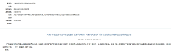 1月19日,廣東省清遠市連州市自然資源局公布《松山腳礦區建筑涂料用、粉料用大理巖礦采礦權出讓收益評估報告》。《報告》顯示,經查,該礦山擁有建筑涂料用大理巖礦石量3066.9萬噸;粉料大理巖礦石量2761.8萬噸;合計資源儲量5828.7萬噸。