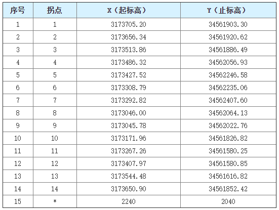 面積:0.52平方千米,拐點坐標如下(2000國家大地坐標):
