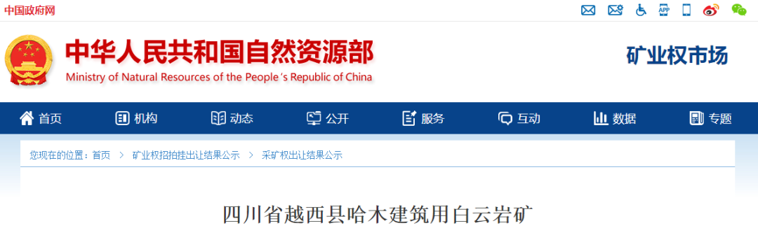 根據《中華人民共和國礦產資源法》《探礦權采礦權招標拍賣掛牌管理辦法(試行)》《自然資源部關于印發礦業權出讓交易規則的通知》(自然資規〔2023〕1號)《自然資源部關于深化礦產資源管理改革若干事項的意見》(自然資規〔2023〕6號)《財政部 自然資源部 稅務總局關于印發<礦業權出讓收益征收辦法>的通知》(財綜〔2023〕10號)《四川省自然資源廳關于貫徹落實〈自然資源部關于推進礦產資源管理改革若干事項的意見(試行)〉精神若干事項的通知》(川自然資規〔2020〕9號)等文件規定,報經涼山州人民政府批準,受涼山州自然資源局委托,涼山州公共資源交易服務中心組織實施四川省越西縣哈木建筑用白云巖礦掛牌出讓工作,現將有關事項公告如下。