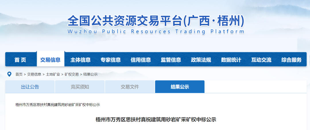 礦以2.8億元被梧州市安盛綠色建筑材料有限公司成功競得。該礦為新立采礦權,未開展采礦活動,其建筑用砂巖礦資源量為1.2億噸,