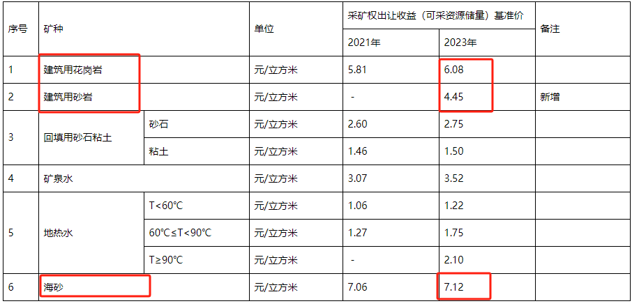 1月29日,廣東珠海市自然資源局公布珠海市采礦權出讓收益市場基準價,建筑用花崗巖為6.08元/立方米,建筑用砂巖為4.45元/立方米,海砂為7.12元/立方米。
