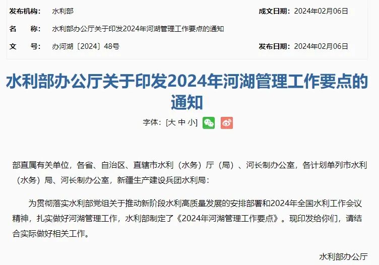 2月初,水利部印發《2024年河湖管理工作要點》的通知。該公告明確要加大河湖庫“四亂”、河道非法采砂等問題整改力度,強化壓力傳導、層層壓實責任。