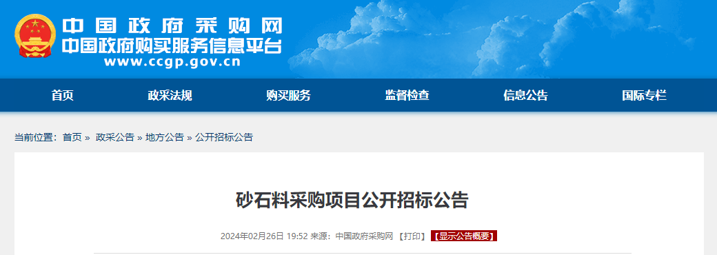 從中國(guó)政府采購(gòu)網(wǎng)獲悉,砂石料采購(gòu)項(xiàng)目公開(kāi)招標(biāo),采購(gòu)規(guī)格中砂(細(xì)度模數(shù)2.3-3.0);碎石(單粒級(jí)5-10mm);采購(gòu)數(shù)量中砂2200方;碎石1600方;預(yù)算金額93萬(wàn)元。意向者于2024年03月21日09點(diǎn)30分前遞交投標(biāo)文件。