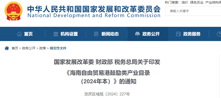 2024年3月1日,國家發展改革委、財政部、稅務總局印發《海南自由貿易港鼓勵類產業目錄(2024年本)》。該目錄自2024年3月1日起施行,《海南自由貿易港鼓勵類產業目錄(2020年本)》同步廢止。