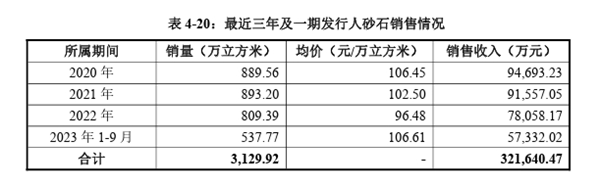 據介紹,2020年度、2021年度、2022年度及2023年1-9月,該公司實現砂/礫石業務收入分別為9.47億元、9.16億元、7.81億元和5.73億元,毛利率分別為71.20%、28.44%、23.80%和33.63%。