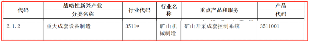 1、產品代碼為3511001的重點產品和服務:礦山開采成套控制系統