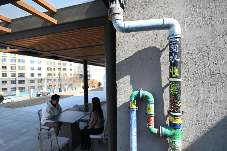 這是3月9日在“eden春山里”生態教育國際生活示范區建筑外拍攝的雨水收集裝置。新華社記者 孫凡越 攝