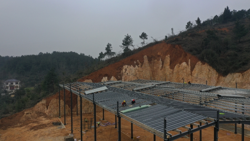 3月19日,位于玉屏經開區的固廢資源綜合利用建設項目現場,工人們正在進行成品倉封頂安裝,項目于2月22日復工以來,倒排工期,爭取下半年建成投產。