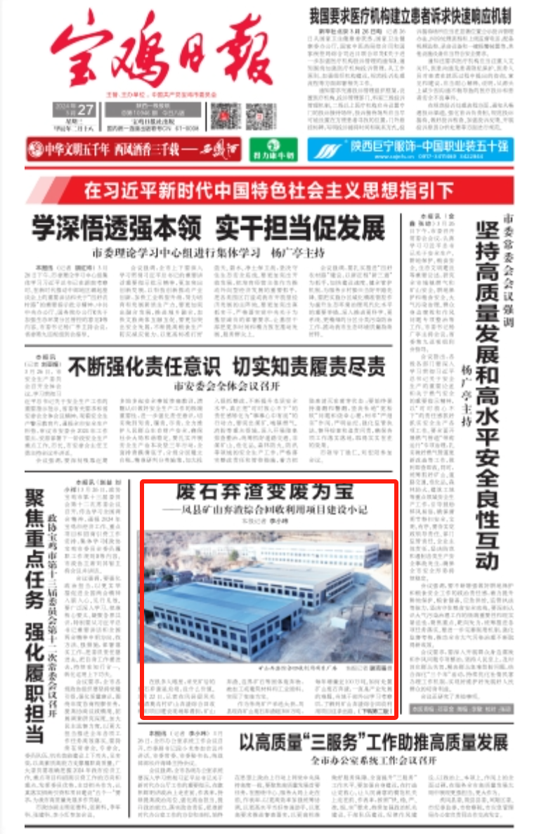據(jù)了解,鳳縣將繼續(xù)在秦嶺腹地踐行習(xí)近平生態(tài)文明思想,充分依托當(dāng)?shù)氐V產(chǎn)資源稟賦,對(duì)礦山廢渣實(shí)施精準(zhǔn)分類(lèi)循環(huán)利用,持續(xù)延長(zhǎng)優(yōu)化產(chǎn)業(yè)鏈條,探索新質(zhì)生產(chǎn)力和傳統(tǒng)生產(chǎn)力協(xié)調(diào)發(fā)展,實(shí)現(xiàn)社會(huì)效益、經(jīng)濟(jì)效益和生態(tài)效益的有機(jī)統(tǒng)一。