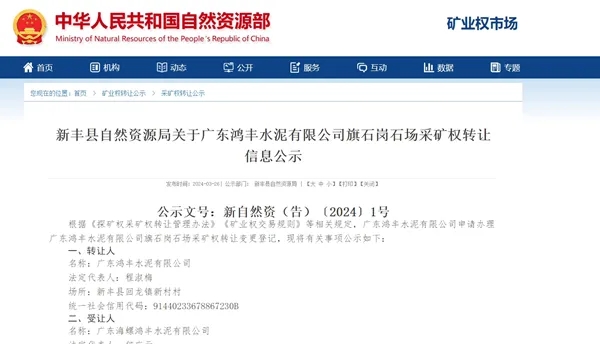 廣東海螺鴻豐水泥有限公司超2.5億元收購廣東鴻豐水泥有限公司旗下旗石崗石場采礦權。意味著,海螺水泥或加強廣東區域市場布局。