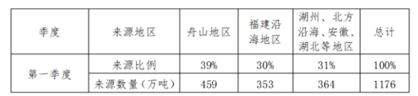 礦的開工投產,資源費、運費等優勢凸顯,進入上海市場數量明顯增加。舟山地區占39%,福建沿海地區占30%,湖州、北方沿海、安徽、湖北等地區占31%。