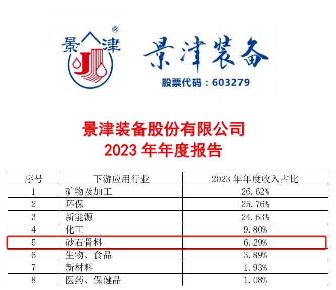近日,景津裝備股份有限公司(簡稱:景津裝備)發(fā)布2023年年度報告,年報顯示,報告期內(nèi),公司積極開拓新客戶,推動新產(chǎn)品的市場化,產(chǎn)品訂單增加,產(chǎn)品產(chǎn)銷量有所增長。公司實現(xiàn)營業(yè)收入62.49億元,比上年度增長9.98%,實現(xiàn)歸屬于上市公司股東的凈利潤10.08億元,較上年度增長20.89%。砂石骨料年度收入占比6.29%。