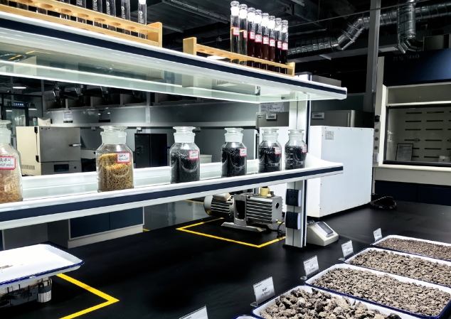 (在大型實(shí)驗(yàn)室里,展示了建筑垃圾經(jīng)過(guò)分揀、破碎、磁選、風(fēng)選等處理后形成的材料。記者 葉竹 攝)