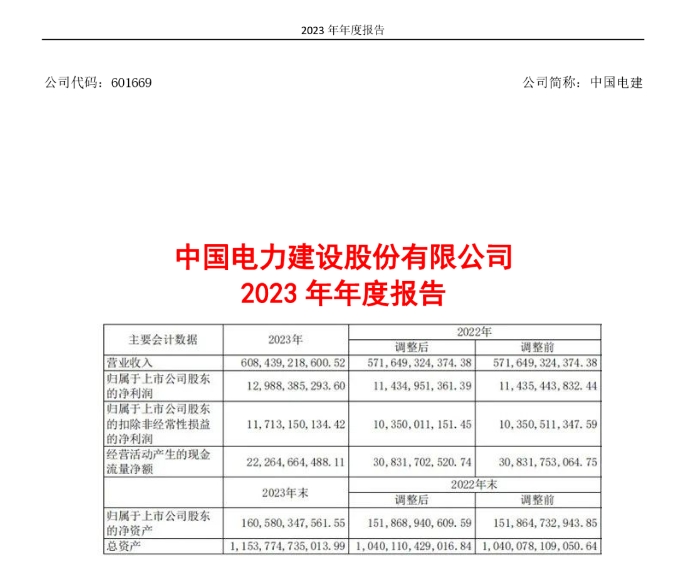 據悉,近日,中電建發布2023年年度報告。報告顯示,2023年公司實現營業收入6084.39億元,同比增長6.44%;歸屬于上市公司股東的凈利潤129.88億元,同比增長13.58%。