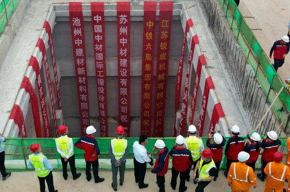 貫通儀式由池州中建材新材料有限公司黨支部書記/總經理/項目現場指揮部指揮長遲廣來主持、中材國際(南京)副總經理/池州項目副指揮長陳淮、蘇州中材副總經理/池州項目常務副指揮長谷建可以及中鐵六局、江蘇銳成相關領導出席了貫通儀式,共同見證了這一激動人心的時刻。