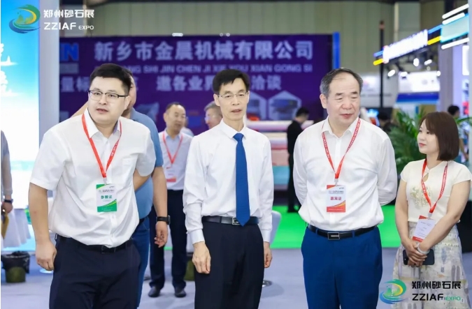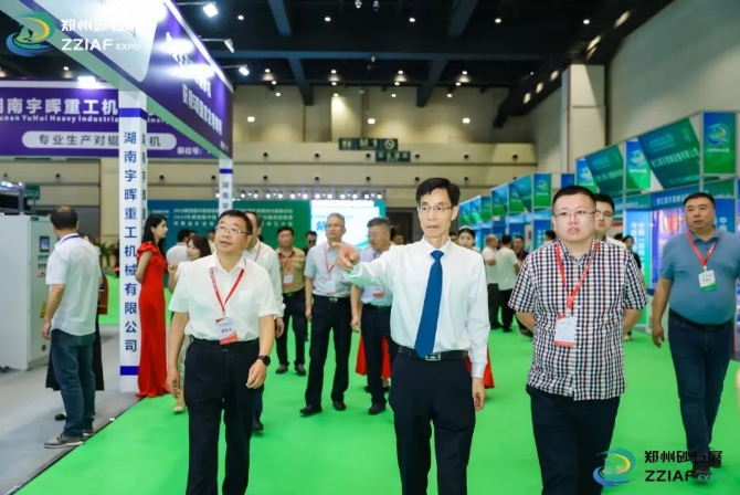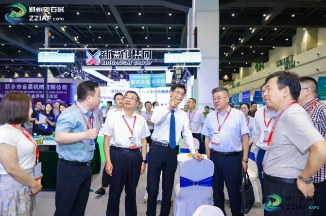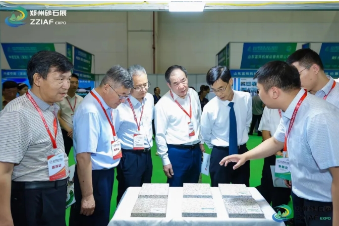 開幕式結束后,中國建材聯合會副會長、中國砂石協(xié)會會長胡幼奕、河南省自然資源廳原二級巡視員、河南省礦業(yè)協(xié)會會長馮進城等領導嘉賓一同進行巡館活動,參觀展品,觀看展品陳列情況,與展商們進行交流洽談并合影留念。