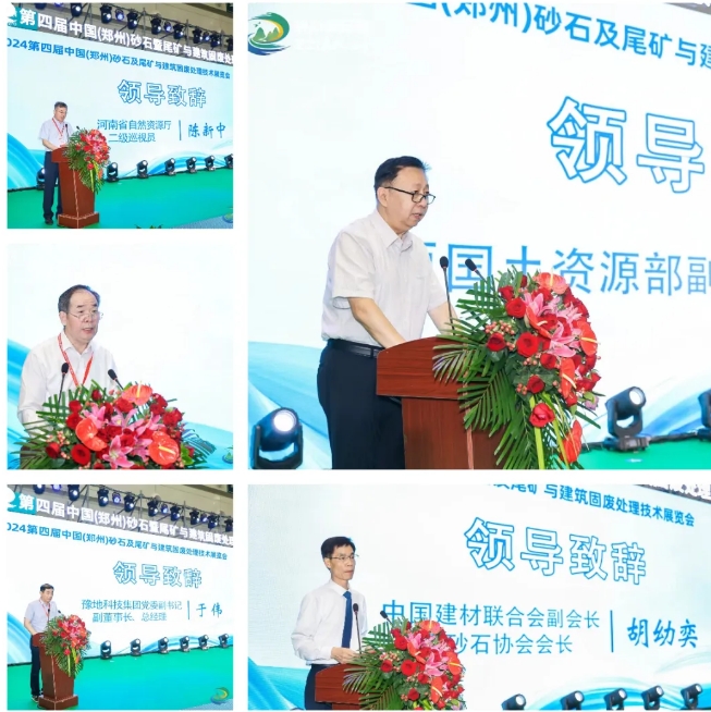 6月3日,在首日開幕式上,原國土資源部副部長汪民、中國建材聯合會副會長、中國砂石協(xié)會會長胡幼奕、河南省自然資源廳二級巡視員陳新中、河南省自然資源廳原二級巡視員、河南省礦業(yè)協(xié)會會長馮進城、河南省豫地科技集團副書記、副董事長、總經理于偉上臺致開幕辭,對2024年第四屆中國(鄭州)砂石及尾礦與建筑固廢展的開幕表示熱烈祝賀。
