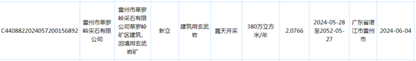 2元/方 380萬方/年!廣東儲量約1.4億方玄武巖礦取得采礦許可證