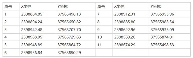 礦區范圍由以下11個拐點坐標圈定(2000國家大地坐標系):