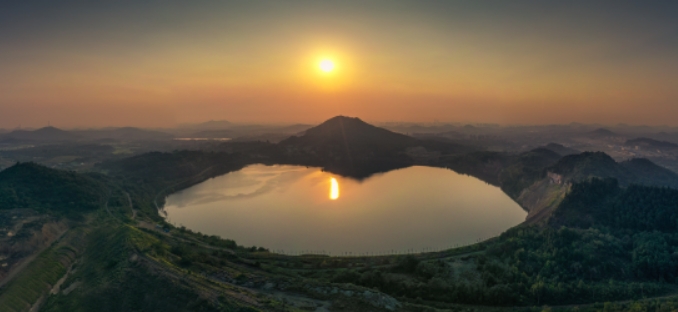 夏日時節,走進安徽省馬鞍山市向山地區的凹山地質文化公園,但見滿目青翠,芳草如茵,蜂蝶翩躚,花團錦簇。登上凹山湖畔觀景平臺上俯視,翠綠色的橢圓形湖面猶如一面鑲嵌在大地的“巨鏡”。湖水碧波蕩漾,燕雀振翅高飛,游人如織,一幅山清水秀的生態畫卷撲面而來。