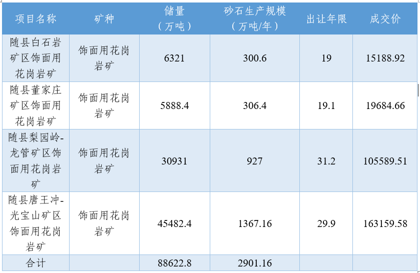 據悉,2022年7月,隨州吳聯礦業有限公司以10.56億元競得湖北省隨縣梨園嶺-龍管礦區飾面用花崗巖礦,礦區范圍內建筑