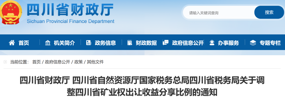 近日,四川省財政廳、自然資源廳、國家稅務總局四川省稅務局聯合印發《關于調整四川省礦業權出讓收益分享比例的通知》(以下簡稱《通知》)。