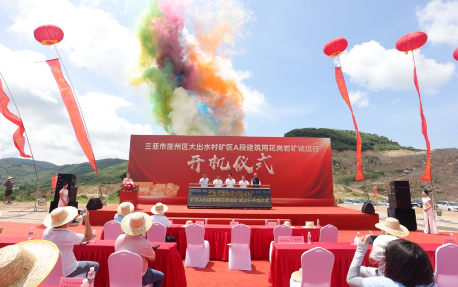 11時18分,企業(yè)代表及嘉賓代表共同上臺啟動開機,彩煙升空、鞭炮齊鳴,現(xiàn)場氣氛熱烈。大家相信,在政府的支持和市場的推動下,三亞市崖州區(qū)大出水村礦區(qū)A段建筑用花崗巖礦將成為推動三亞市乃至海南省經(jīng)濟社會發(fā)展的重要力量。
