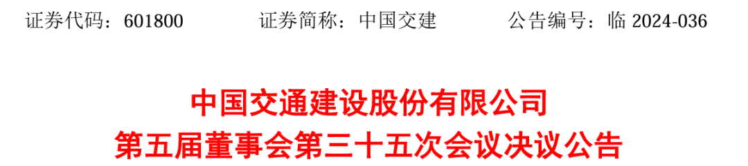 2024年6月18日,中國交通建設股份有限公司(以下簡稱中交集團)發(fā)布中國交通建設股份有限公司第五屆董事會第三十五次會議決議公告。