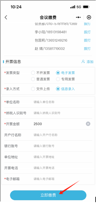 3.提前繳費(fèi)的代表,報(bào)到時(shí)直接簽到并領(lǐng)取發(fā)票。線(xiàn)上報(bào)名時(shí),請(qǐng)?zhí)顚?xiě)完整發(fā)票信息;同一筆匯款需要開(kāi)多張發(fā)票的,請(qǐng)務(wù)必在系統(tǒng)中備注;如使用個(gè)人名義匯款,請(qǐng)務(wù)必備注與“發(fā)票信息”中完全一致的單位名稱(chēng)。現(xiàn)場(chǎng)報(bào)名繳費(fèi)的代表,請(qǐng)?jiān)敿?xì)填寫(xiě)郵寄信息,發(fā)票將于會(huì)后20個(gè)工作日內(nèi)郵寄。
