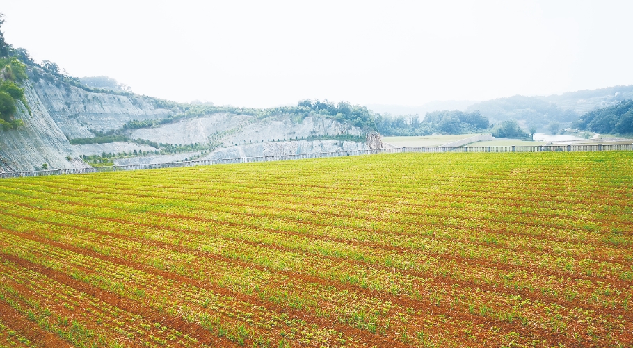 “這200多畝轉型利用修復的土地栽種了高粱、黃豆,郁郁蔥蔥的一大片綠色,讓人看了十分愜意。”6月22日,在位于宜都市五眼泉鎮龍口子村關閉轉型的鷹子石建筑石料礦山處,五眼泉鎮自然資源和規劃所所長袁道榮指著眼前生態修復后的礦山說道。