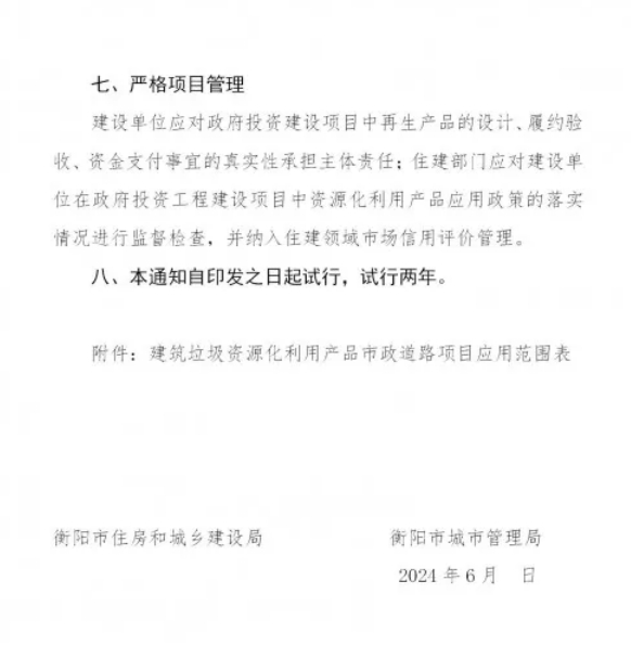 近日,湖南衡陽(yáng)市住房和城鄉(xiāng)建設(shè)局發(fā)布關(guān)于征求《關(guān)于進(jìn)一步加強(qiáng)建筑垃圾資源化利用產(chǎn)品應(yīng)用工作的通知(試行)》意見(jiàn)的通知,征求意見(jiàn)截止時(shí)間為2024年7月1日。