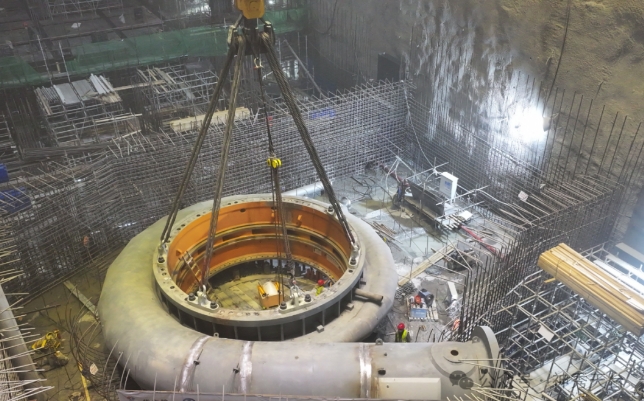 不久前,該項(xiàng)目順利完成了1號(hào)機(jī)組座環(huán)、蝸殼與蝸殼延伸段在安裝間焊接成整體后一次性吊裝。這是國(guó)內(nèi)抽水蓄能領(lǐng)域開(kāi)發(fā)并成功使用的創(chuàng)新型工法。與傳統(tǒng)工法相比,至少節(jié)約10天直線工期。