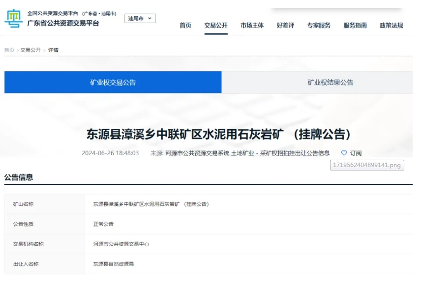 0.94元/噸!廣東河源掛牌出讓儲量超億噸、年產500萬噸石灰巖礦