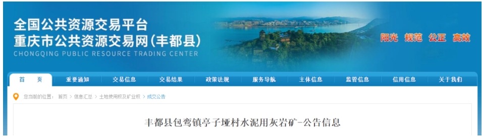 近日,重慶市豐都縣包鸞鎮亭子埡村水泥用灰巖礦采礦權被中國砂石協會常務理事單位——東方希望重慶水泥有限公司以68803萬元的底價拍得。該礦權資源儲量26260.60萬噸,生產規模:2000萬噸/年,出讓年限17年,單價為2.62元/噸。