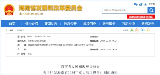 今年2月海南省發布《海南省2024年重大項目投資計劃表》,2024年安排省重大正式項目295個,總投資7744億元,年度計劃投資1255億元。此外,安排省級112個預備項目,總投資3334億元,以應對海南自由貿易港的高質量發展需求。重大項目加預備項目共計407個,總投資11078億!