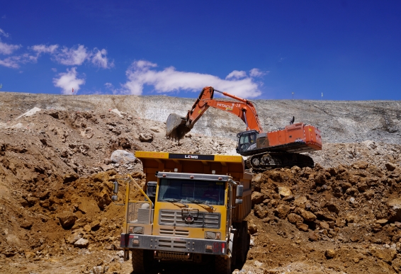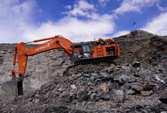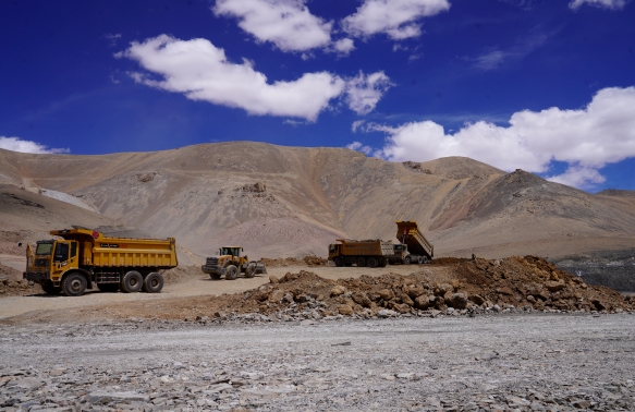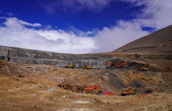 破碎錘正在作業(yè),將剝離出來(lái)的巖石裝車、拉運(yùn),現(xiàn)場(chǎng)一派繁忙。新疆火燒云鉛鋅礦海拔在5600米左右,是鉛鋅礦床海拔高度世界之最,也是目前我國(guó)探明資源量最大的鉛鋅礦,金屬儲(chǔ)量超2100萬(wàn)噸。該礦采用露天開采方式,開采規(guī)模每年250萬(wàn)噸。