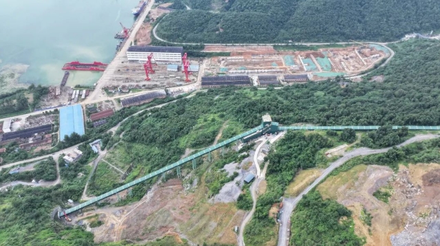 礦山直接通往長江貨運(yùn)碼頭,從空中俯瞰,宛如一條凌空飛架的“巨龍”,一路向江。