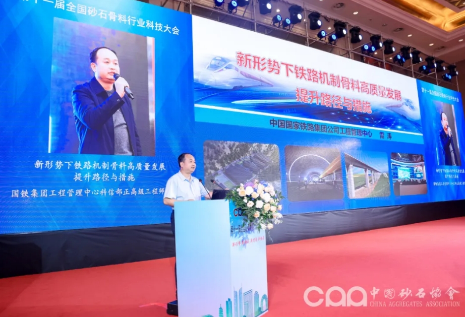 國鐵集團工程管理中心科信部正高級工程師雷濤作了題為《新形勢下鐵路機制骨料高質量發(fā)展提升路徑與措施》的主題報告。從鐵路發(fā)展形勢和鐵路骨料應用變化歷程,系統(tǒng)論述鐵路機制骨料高質量發(fā)展的路徑和措施。詳解鐵路機制骨料生產和應用的管理目標、技術要求、科技創(chuàng)新及具體案例。