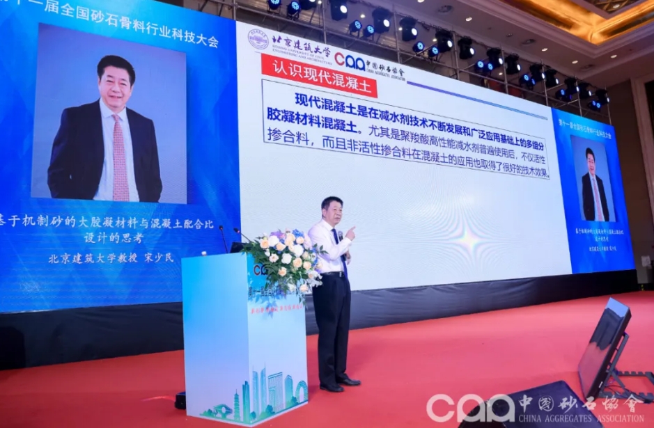 北京建筑大學教授宋少民作題為《基于機制砂的大膠凝材料與混凝土配合比設計的思考》的主題報告,利用機制骨料制備和應用混凝土的大時代,現(xiàn)代混凝土的膠凝材料需要樹立大視野觀,機制砂預拌混凝土的配合比設計方法需要適合機制砂應用的工程實踐,報告圍繞機制砂混凝土的膠凝材料體系和配合比設計方法研究與相關思考展開。