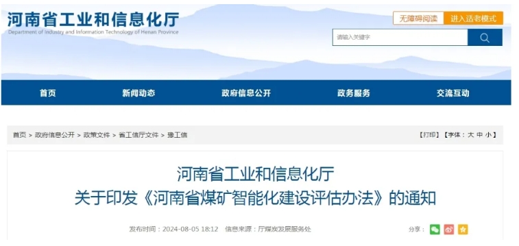 近日,從河南省工業(yè)和信息化廳獲悉,為積極推進煤礦智能化建設,全面規(guī)范煤礦智能化評估管理,該廳重新修訂下發(fā)了《河南省煤礦智能化建設評估辦法》(以下簡稱《評估辦法》),省內(nèi)所有正常生產(chǎn)的井工煤礦及配套選煤廠申請智能化煤礦評估均按照新的標準執(zhí)行。