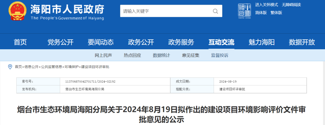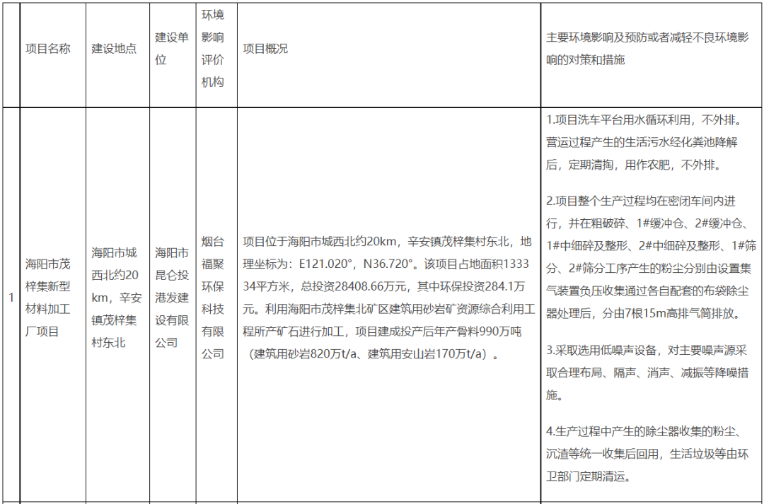 近日,山東煙臺市生態(tài)環(huán)境局發(fā)布擬對海陽市茂梓集新型材料加工廠項目作出建設項目環(huán)境影響評價文件審批意見的公示。