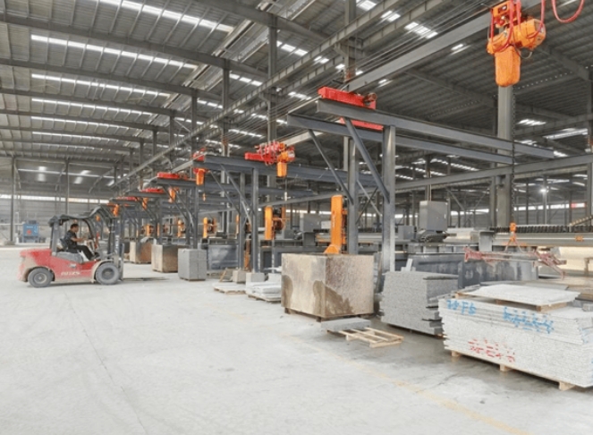 據(jù)了解,該項(xiàng)目分兩期建設(shè),一期占地123畝,總投資15億元,入駐企業(yè)2家,建成生產(chǎn)車間19500平方米,建設(shè)花崗巖板材及異形石材深加工生產(chǎn)線10條,可年加工花崗巖板材400萬平方米、