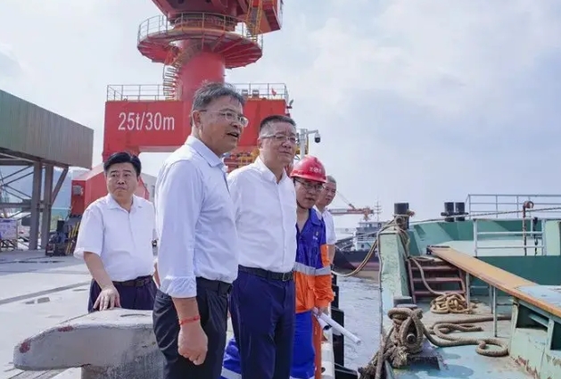 黃石市委副書記、市長(zhǎng)吳之凌(前排左二)調(diào)研富池綜合碼頭項(xiàng)目建設(shè)情況