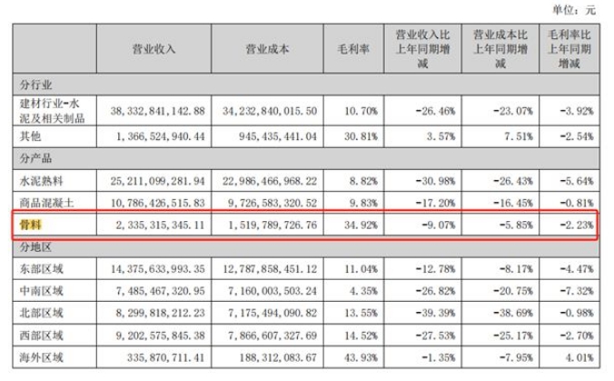 天山股份上半年凈虧損34.14億元!銷售骨料5938萬噸
